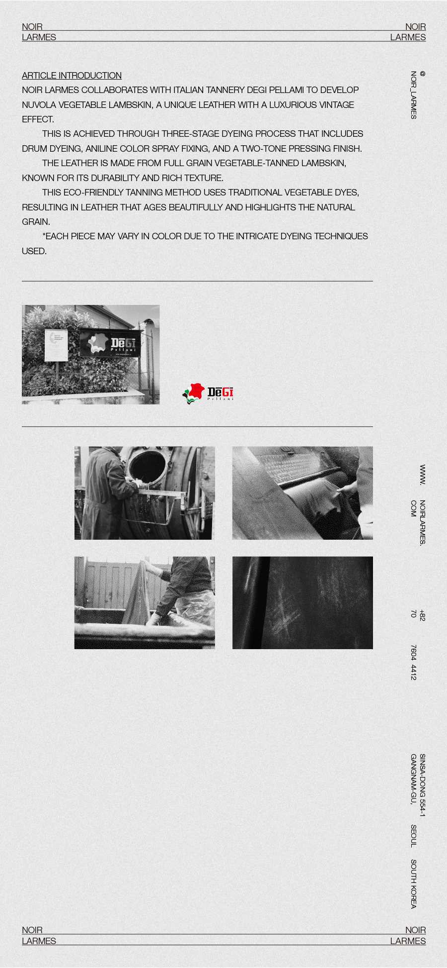 Noir Larmes collaborates with Italian tannery DEGI PELLAMI to develop NUVOLA Vegetable Lambskin, a unique leather with a luxurious vintage effect.