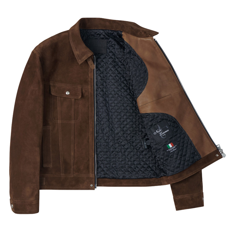 MAESTRI Tannery’s Baby Calfskin Suede products are crafted by first processing the pickled skins into crust. The hides then undergo a white tanning process to ensure color uniformity. Before the suede buffing process begins, the skins are compressed to create an even color finish.