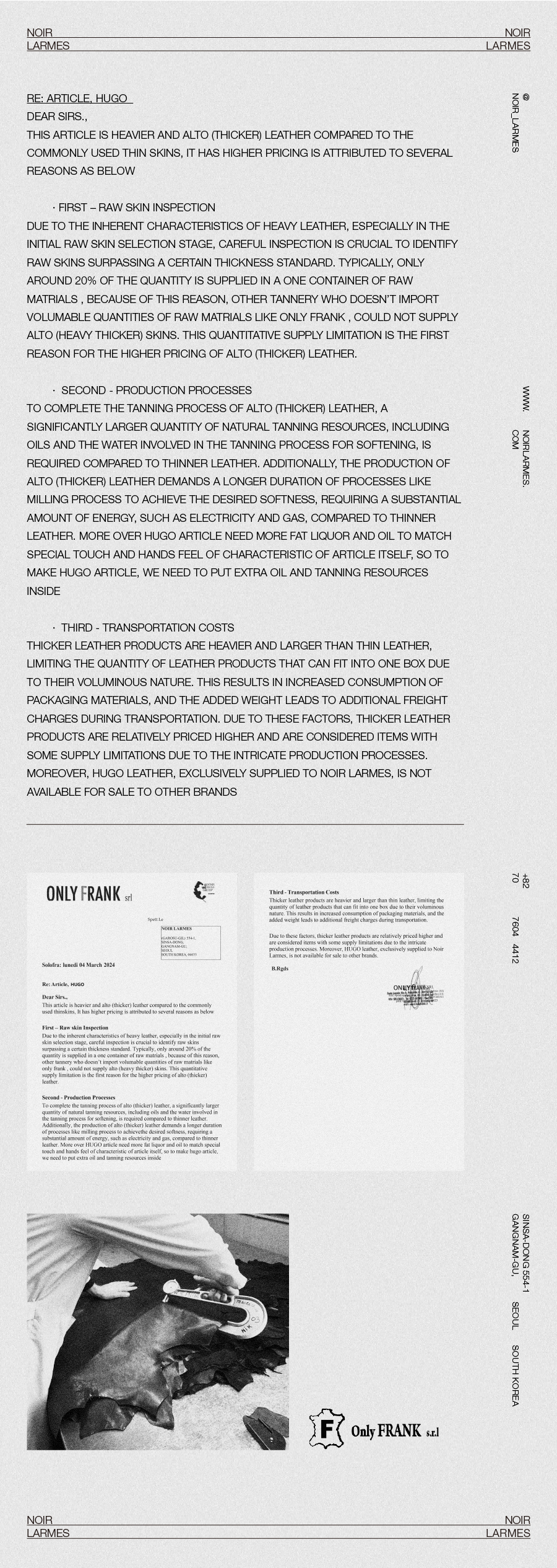 NOIR LARMES has created a vegetable lambskin article called HUGO VEGETABLE LAMBSKIN throughout the 16 years of partnership with ONLY FRANK.