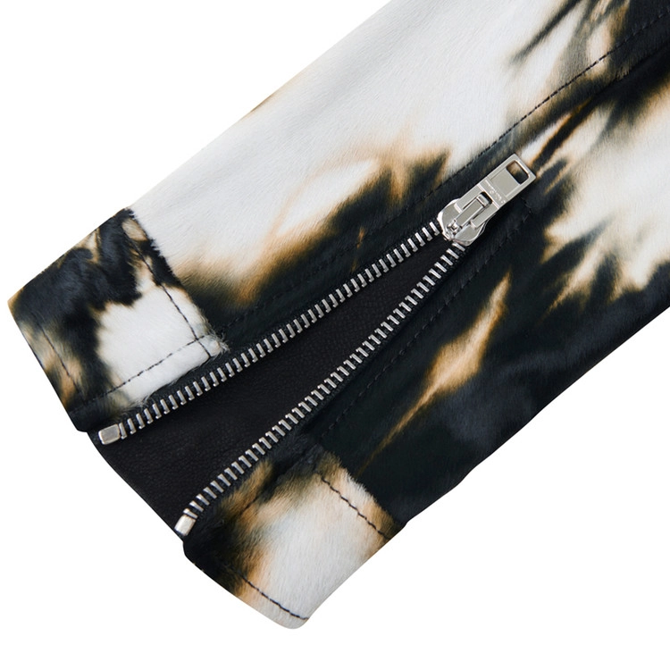 Black Label baby calfskin tie-dye hair-on jacket.
