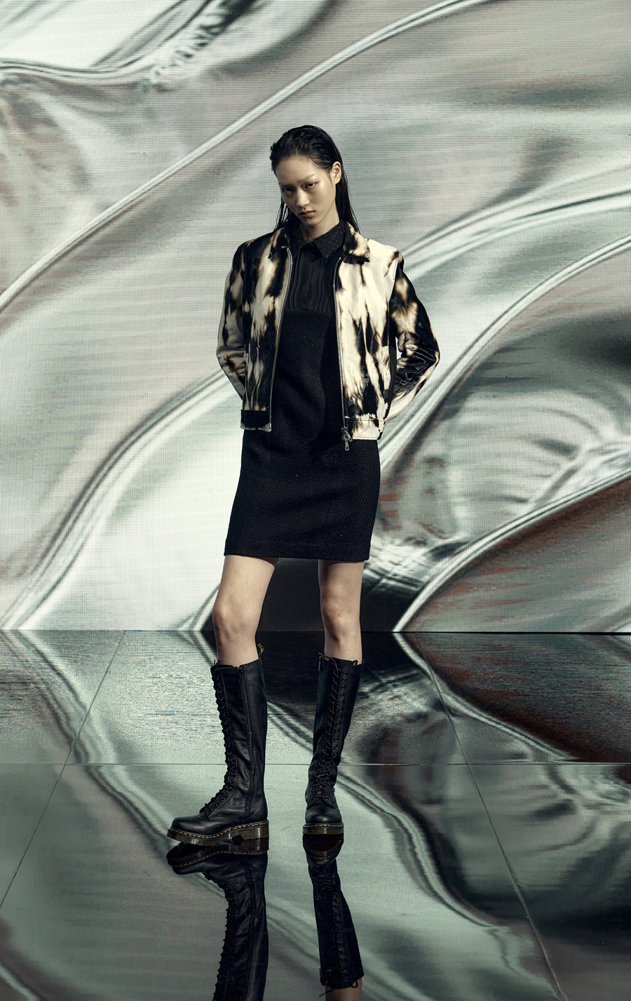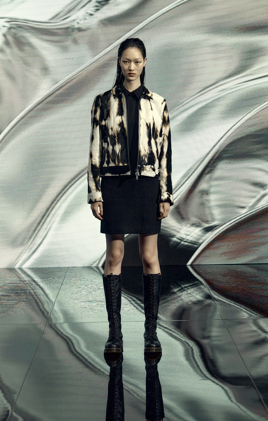 The best quality baby calf Paris article, which has legatura and Tie & Dye process on the wet blue-hair calfskin, exclusively developed by the best fur tannery, Pistolesi, Italy